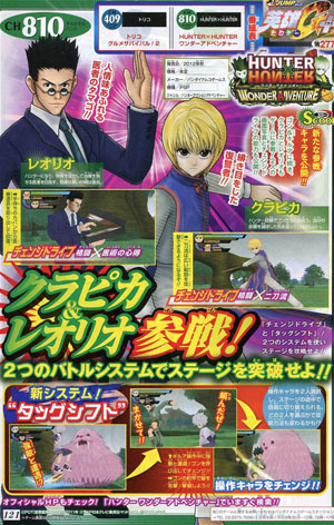 NBGI将于2012年秋天在PSP平台推出根据富坚义博大人气动漫改编的猎人动作冒险游戏《全职猎人:奇迹冒险》。游戏中玩家可以操控主人公小杰和奇犽来进行冒险,体验原作剧情及猎人考试。日前,官方公布本作将会收录擅长格斗与二刀流的酷拉皮卡,以及擅长格斗与医术的雷欧利这两名角色登场参战。 ●酷拉皮卡的Change Drive(每名角色拥有两种风格,可以在之间互相切换的系统)是“格斗X二刀流”。可以将攻击范围扩大。 ●雷欧力的Change Drive是“格斗X医术心得”,可以使用医疗道具来回复。